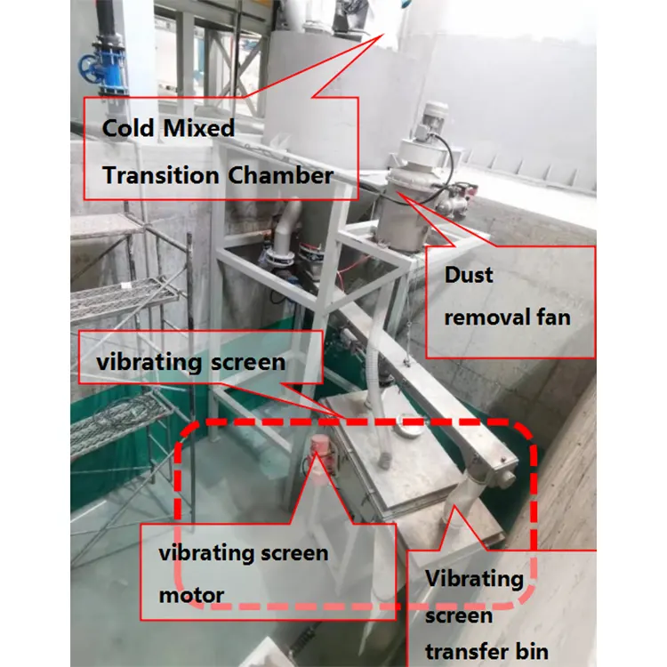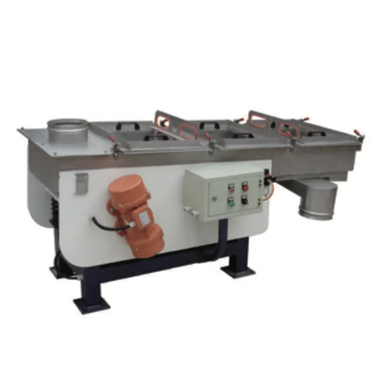 A FANCHANG Machinery által szállított vibrációs szita a kevert kész anyagok szitálására szolgál. Belül rozsdamentes acél képernyővel van felszerelve, és mindkét oldalán vibrációs motorok vannak. A vibrációs szűréssel eltávolítják a nagy részecskéket és egyéb szennyeződéseket, és a minősített port a tárolótartályba vagy szállítóeszközbe ürítik.